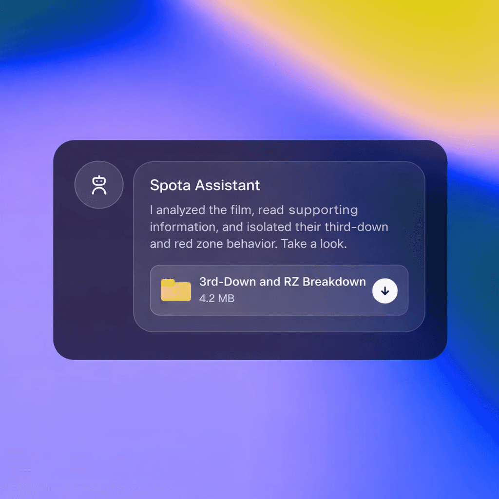 Spota understands football the way staffs do, situations, tendencies, and constraints, not just keywords. Collaborate, explore patterns, and pressure-test schemes.